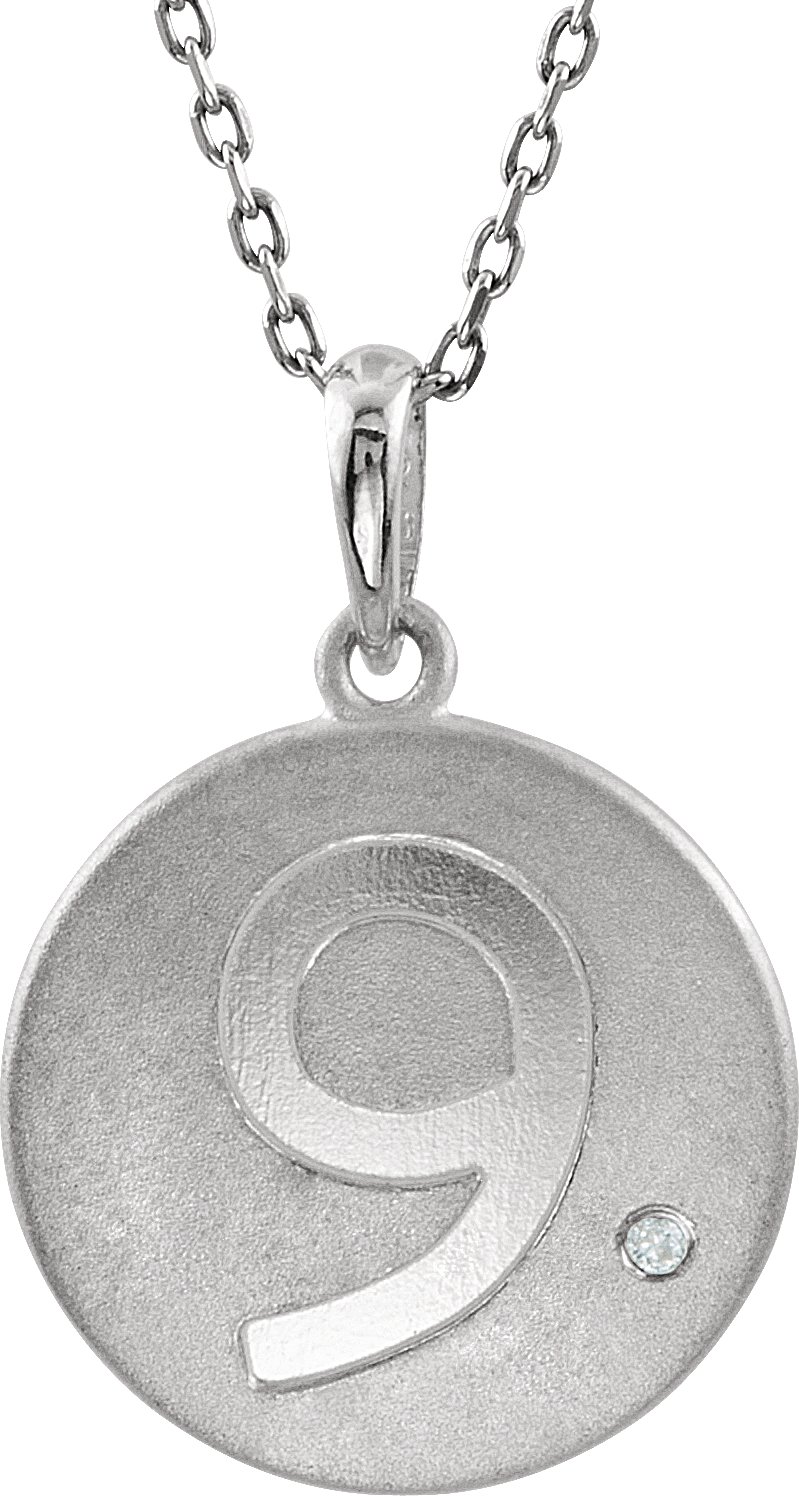 Sterling Silver .005 CT Diamond Numeral 9 Disc 18" Necklace Ref. 4330114