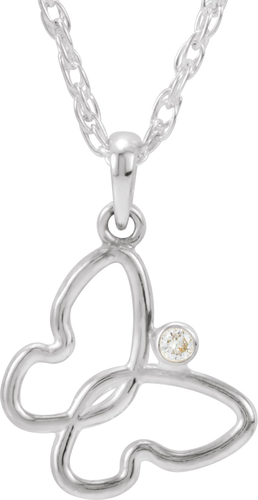 Sterling Silver .025 CTW Diamond Butterfly 18" Necklace Ref. 5056551