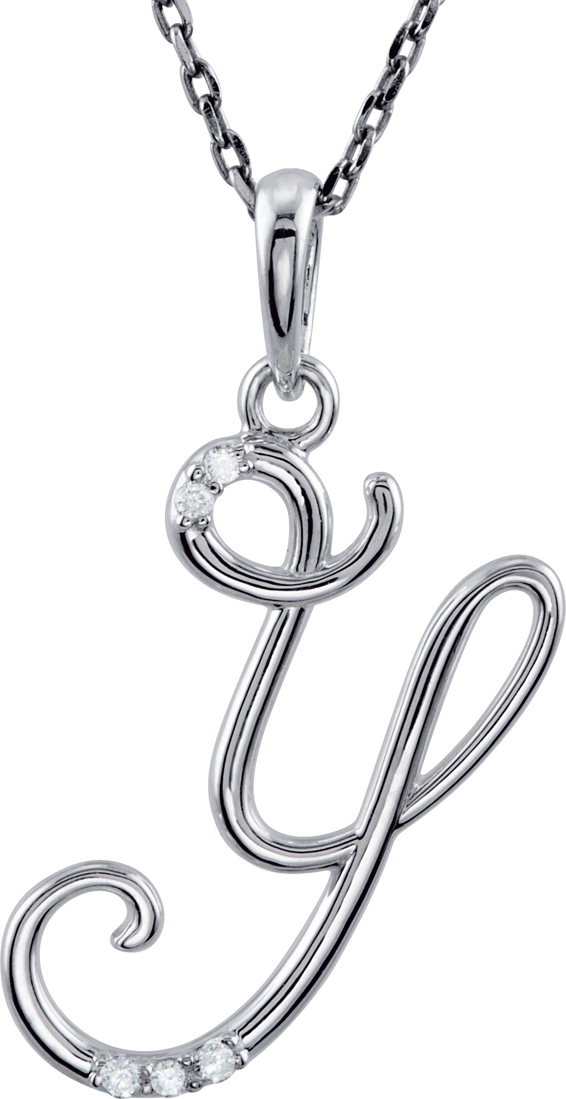 Sterling Silver .03 CTW Diamond Initial Y 18" Necklace Ref. 4102172
