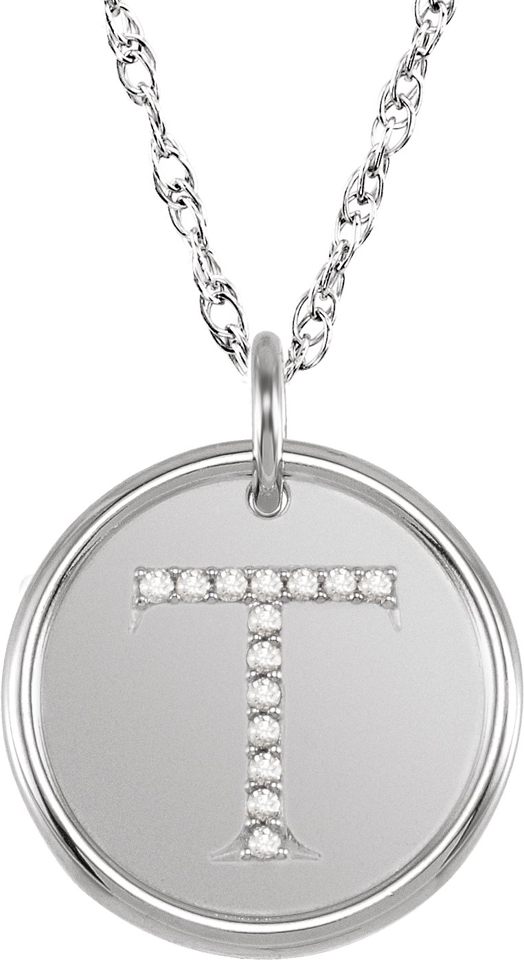 Sterling Silver .07 CTW Natural Diamond Initial T 18 inch Necklace Ref 5566150