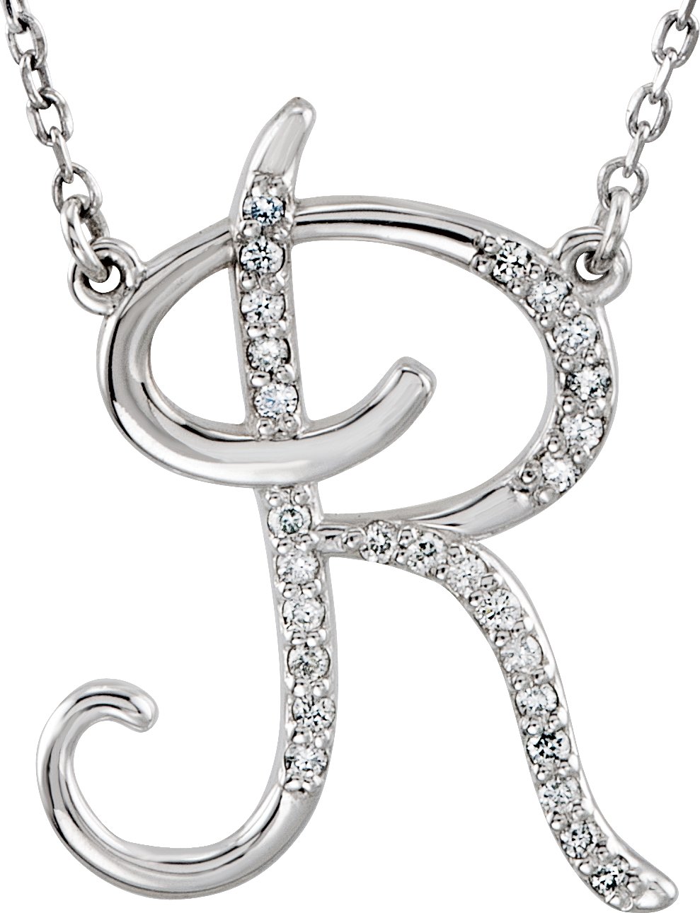 Sterling Silver 1/8 CTW Diamond Initial R 16" Necklace Ref. 2826874
