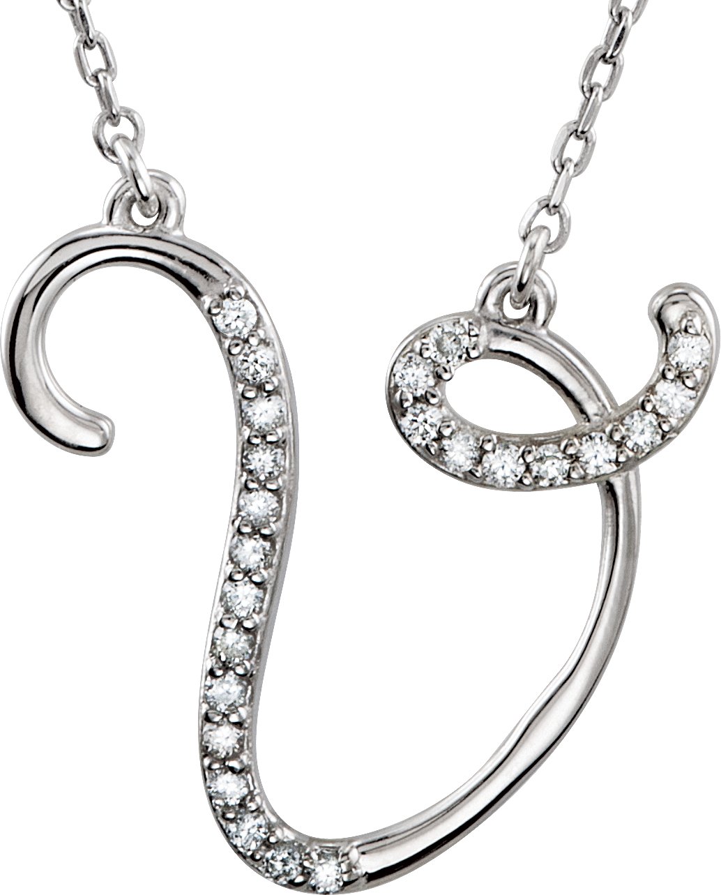 Sterling Silver 1/8 CTW Diamond Initial V 16" Necklace Ref. 2826967