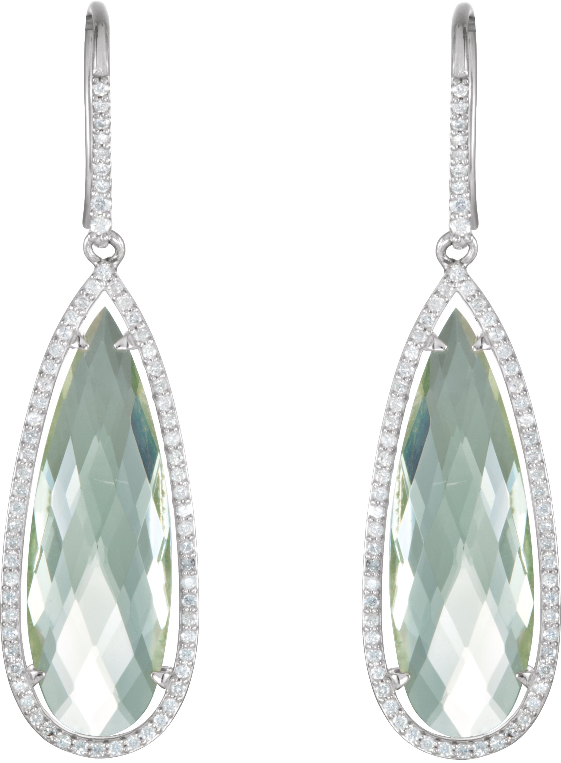 Description: Green Quartz And 3/4 CTW Diamond Earrings