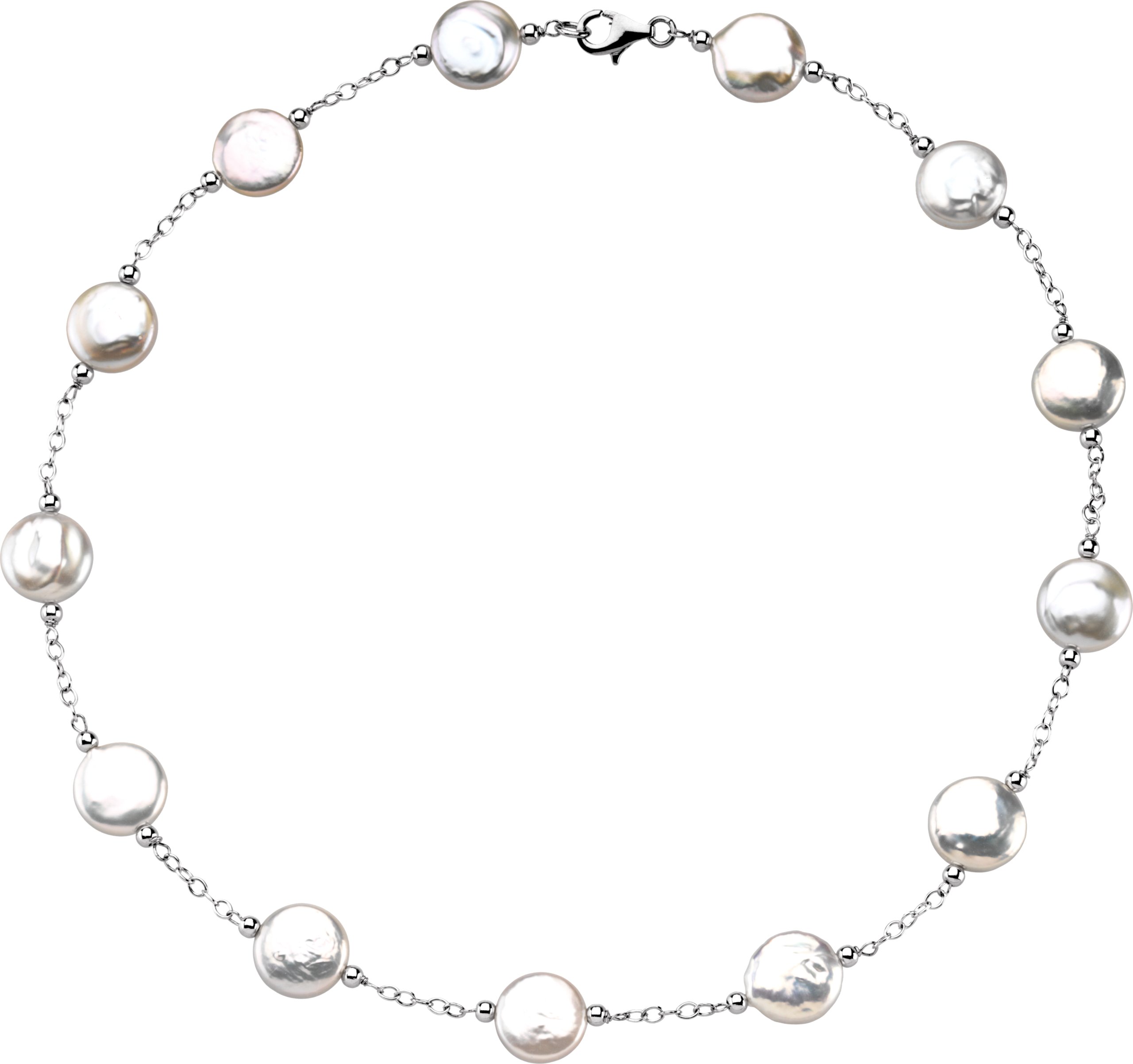 Sterling Silver 12 13 mm Freshwater Cultured White Coin Pearl Station 18 inch Necklace