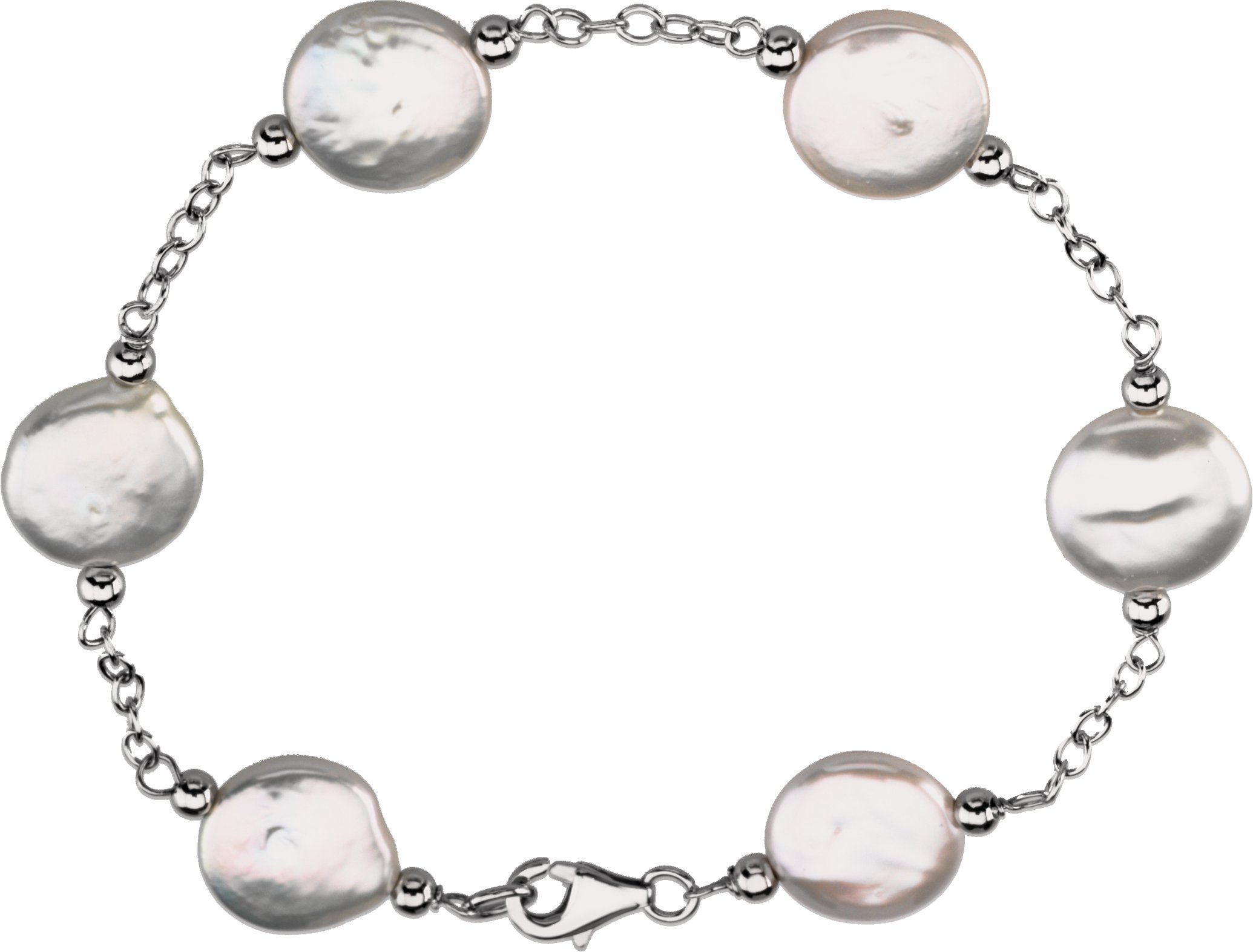 Sterling Silver 12 13 mm Freshwater Cultured White Coin Pearl Station 7.5 inch Bracelet
