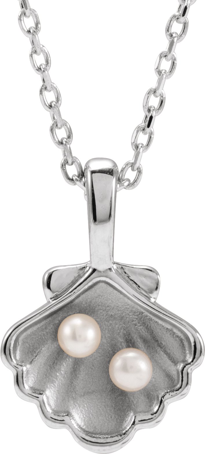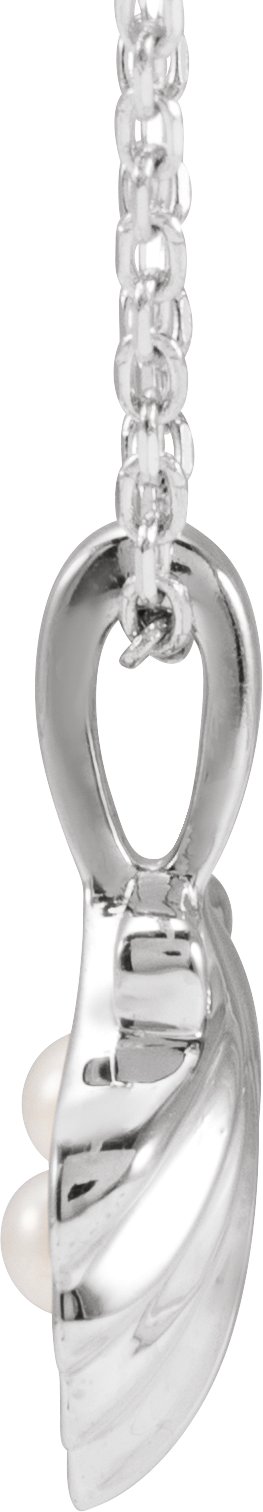 Sterling Silver 2-Stone Cultured White Seed Pearl Family Shell 16-18" Necklace