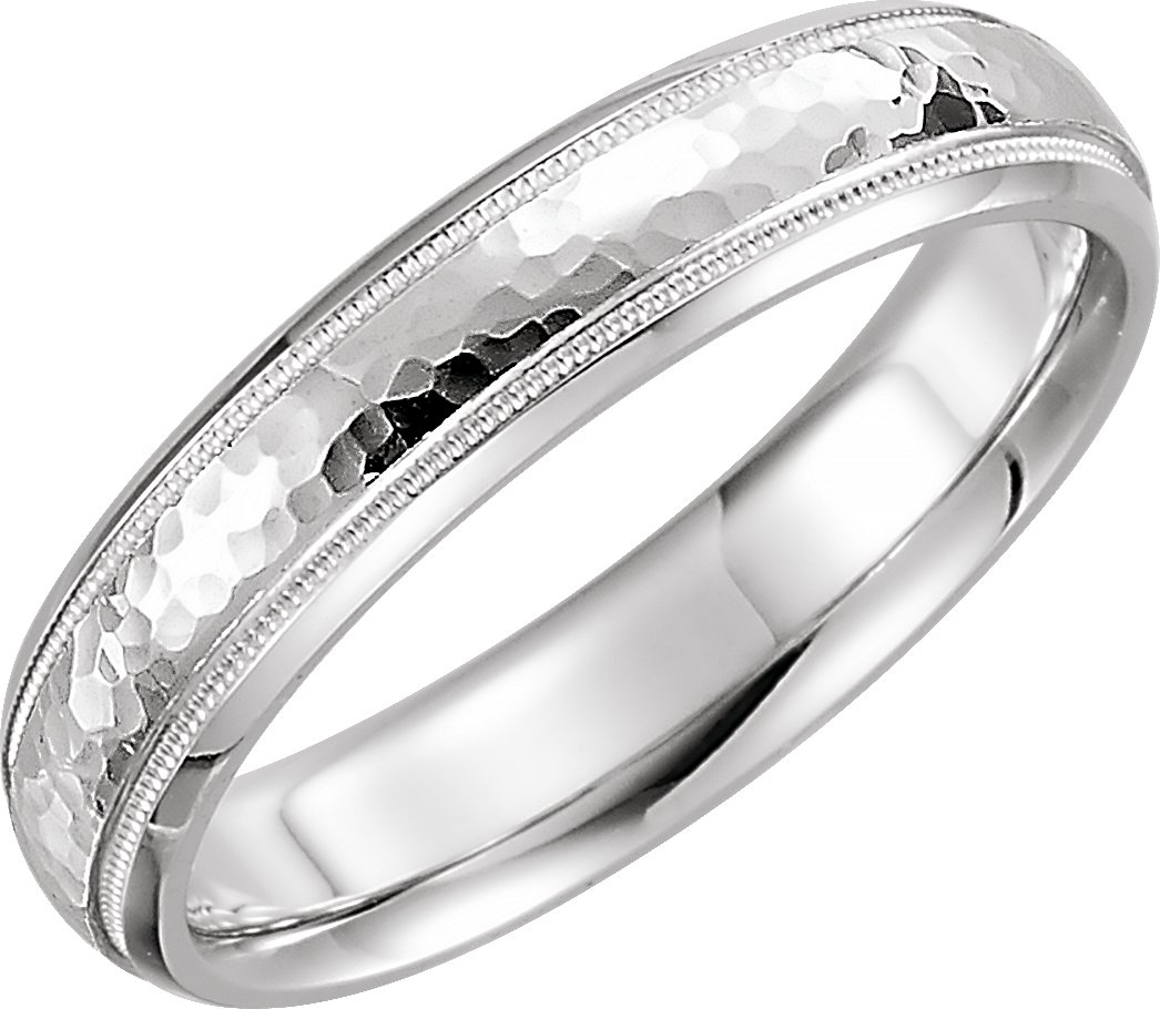 Description: Half Round Comfort-Fit Milgrain Band With Hammer Finish