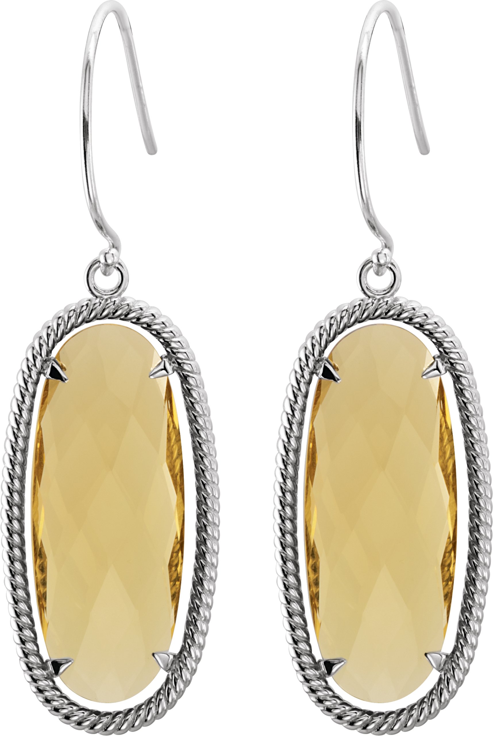 Sterling Silver 25 X 10 mm Oval Honey Quartz Rope Styled Dangle Earrings