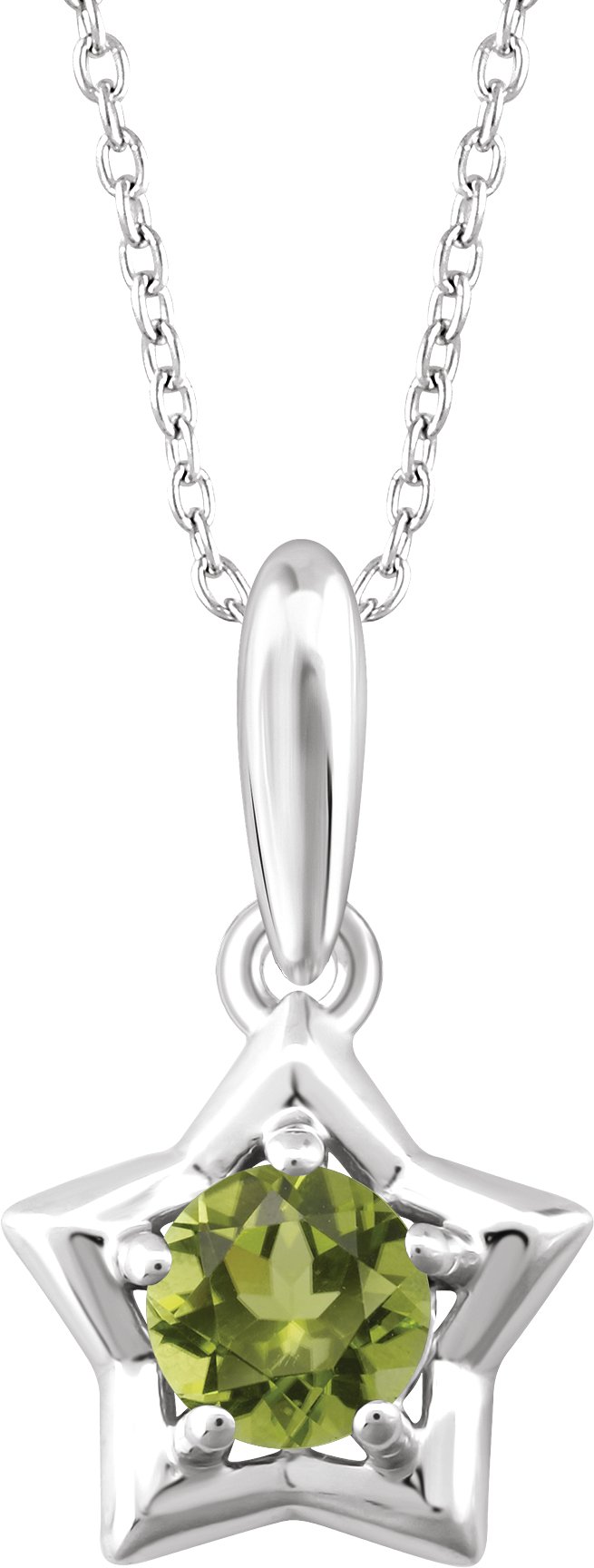 Sterling Silver 3 mm Round August Youth Star Birthstone 15 inch Necklace