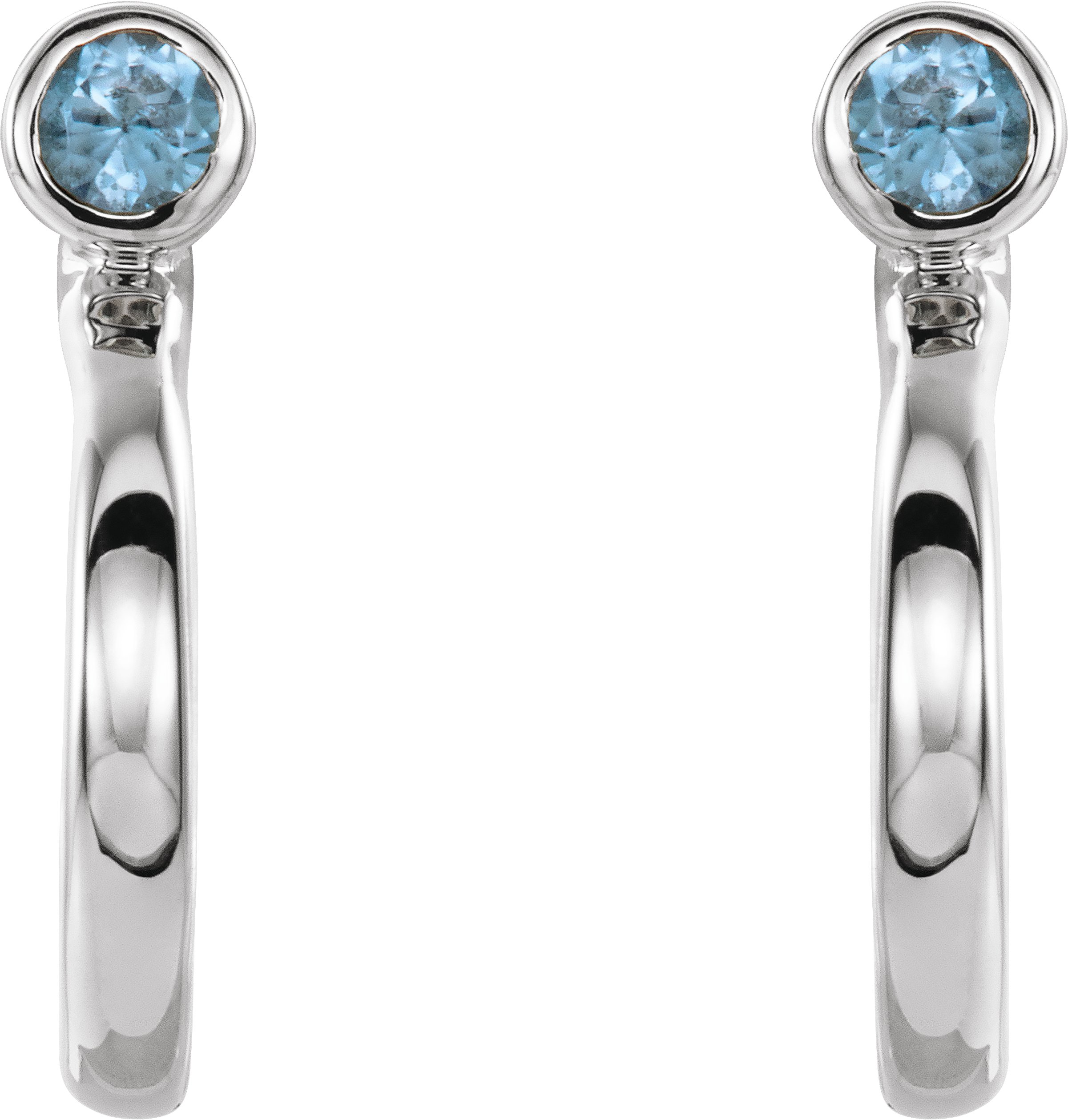 Sterling Silver 3 mm Round Blue Zircon Bezel Set Hoop Earrings