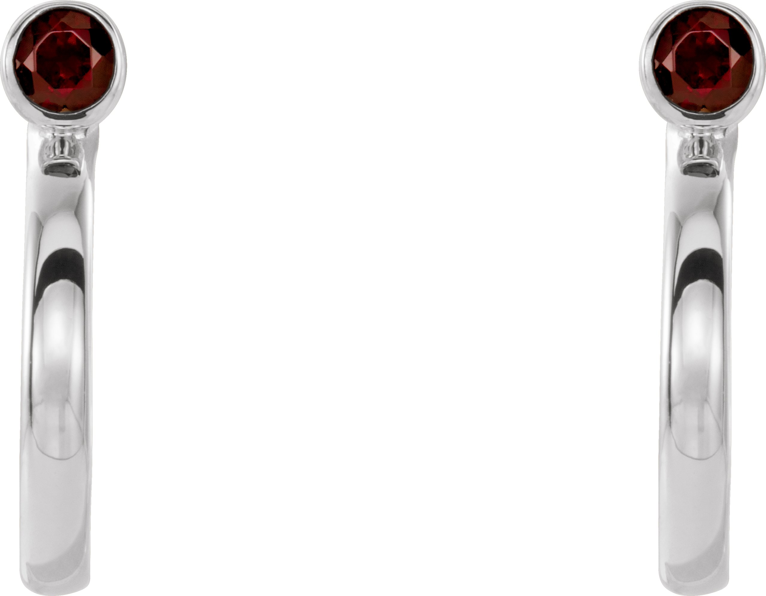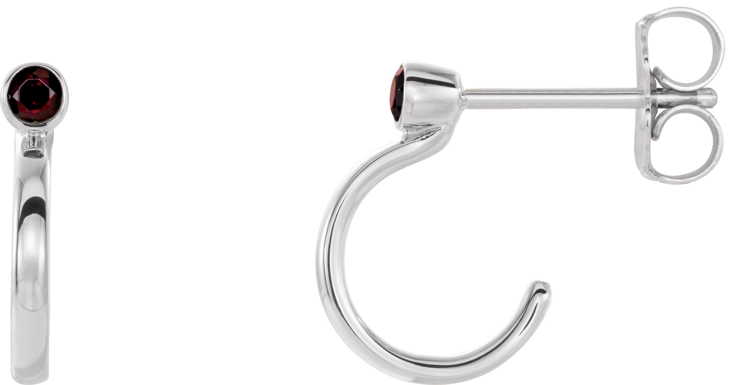 Sterling Silver 3 mm Round Mozambique Garnet Bezel Set Hoop Earrings