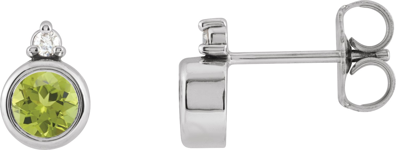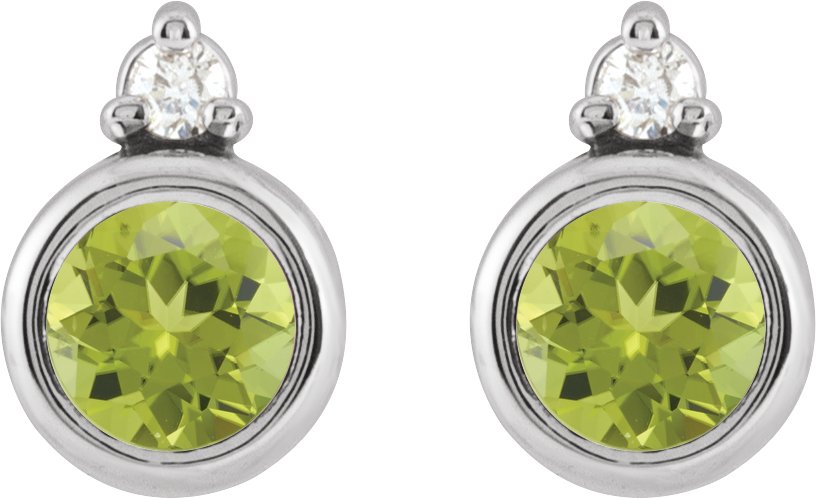 Sterling Silver 4 mm Natural Peridot & .03 CTW Natural Diamond Earrings
