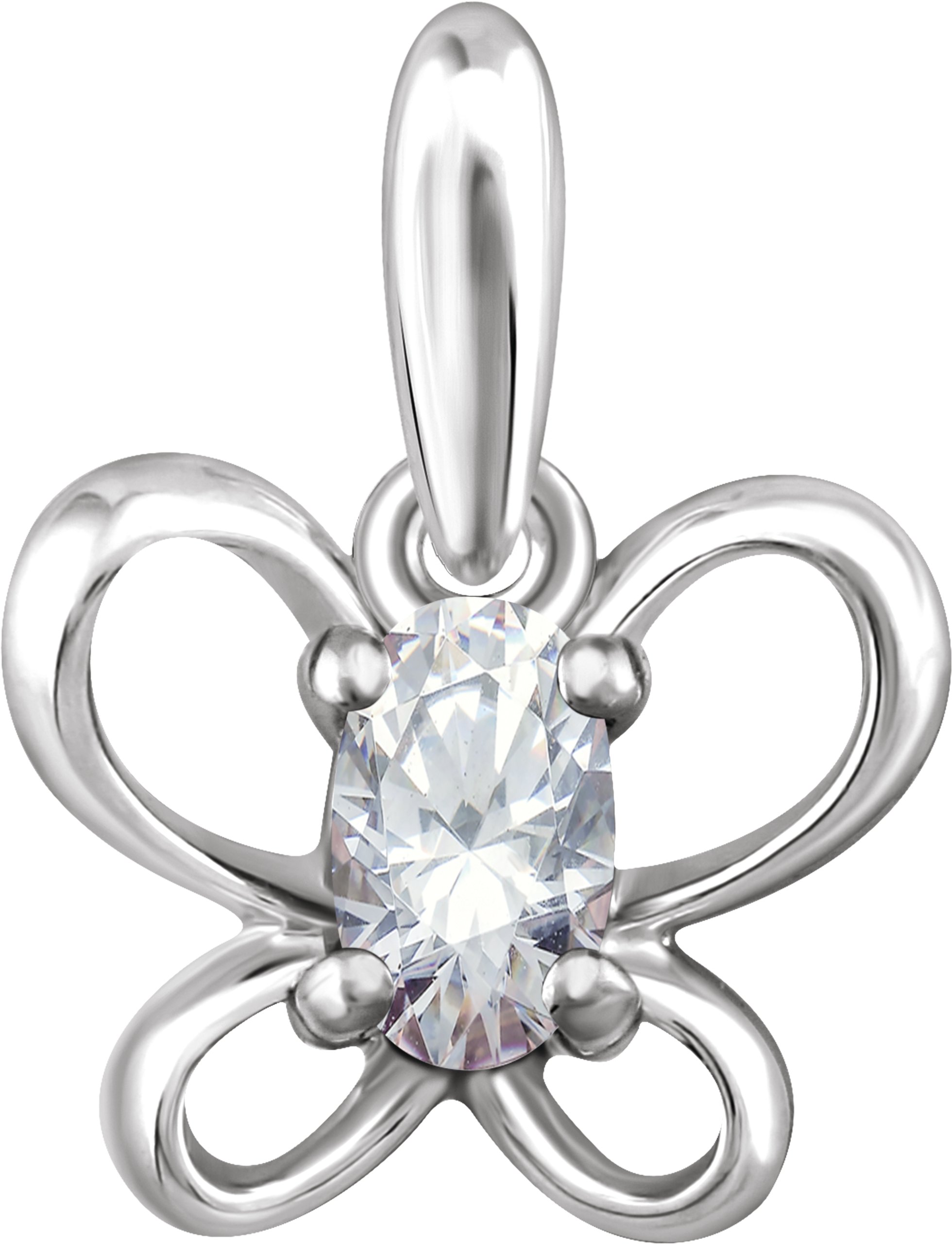 Sterling Silver 4x3 mm Oval April Youth Butterfly Birthstone 15 inch Necklace