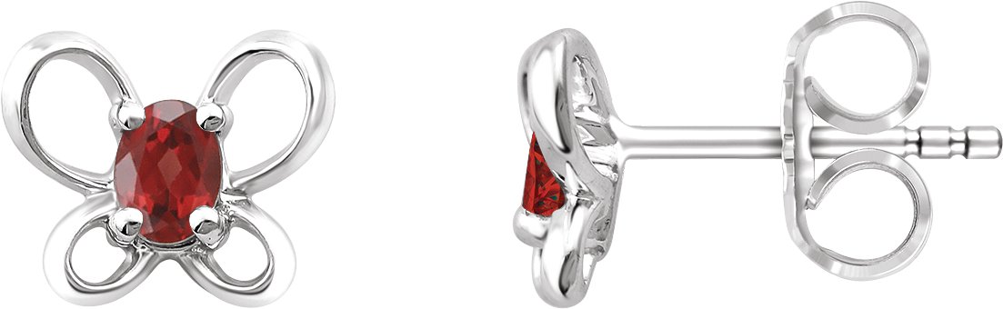 Sterling Silver 4x3 mm Oval January Youth Butterfly Birthstone Earrings