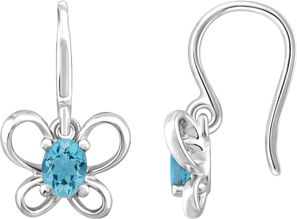 Sterling Silver 4x3 mm Oval March Youth Butterfly Birthstone Earrings
