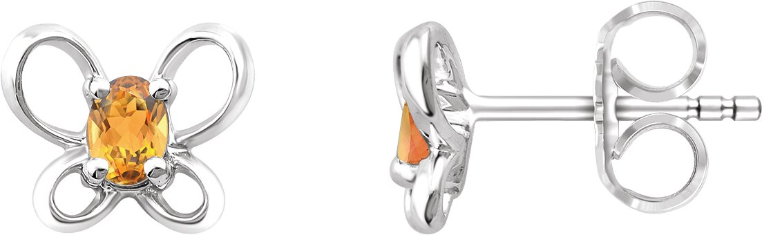 Sterling Silver 4x3 mm Oval November Youth Butterfly Birthstone Earrings
