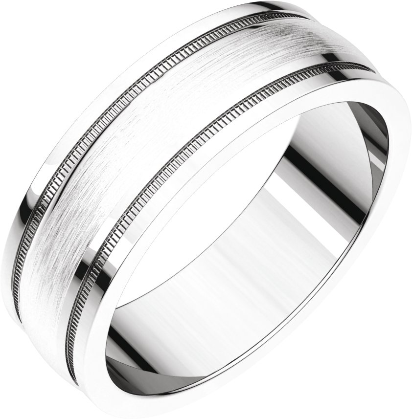 Description: Flat Edge Comfort-Fit Milgrain Band With Satin Finish Center