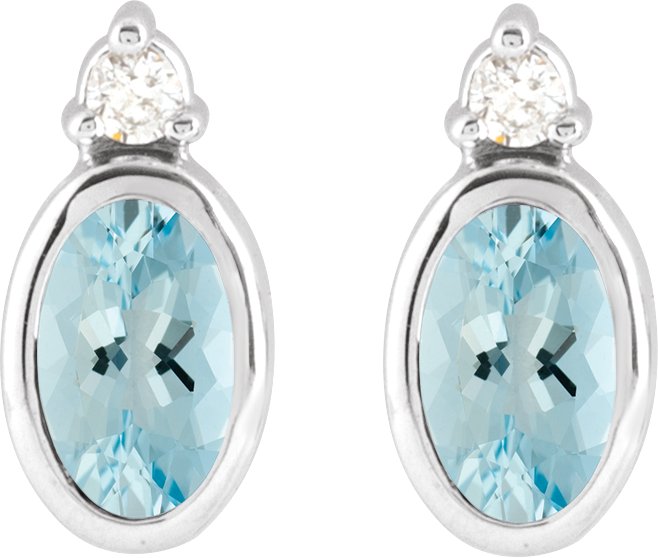 Description: Natural Aquamarine And .03 CTW Natural Diamond Earrings
