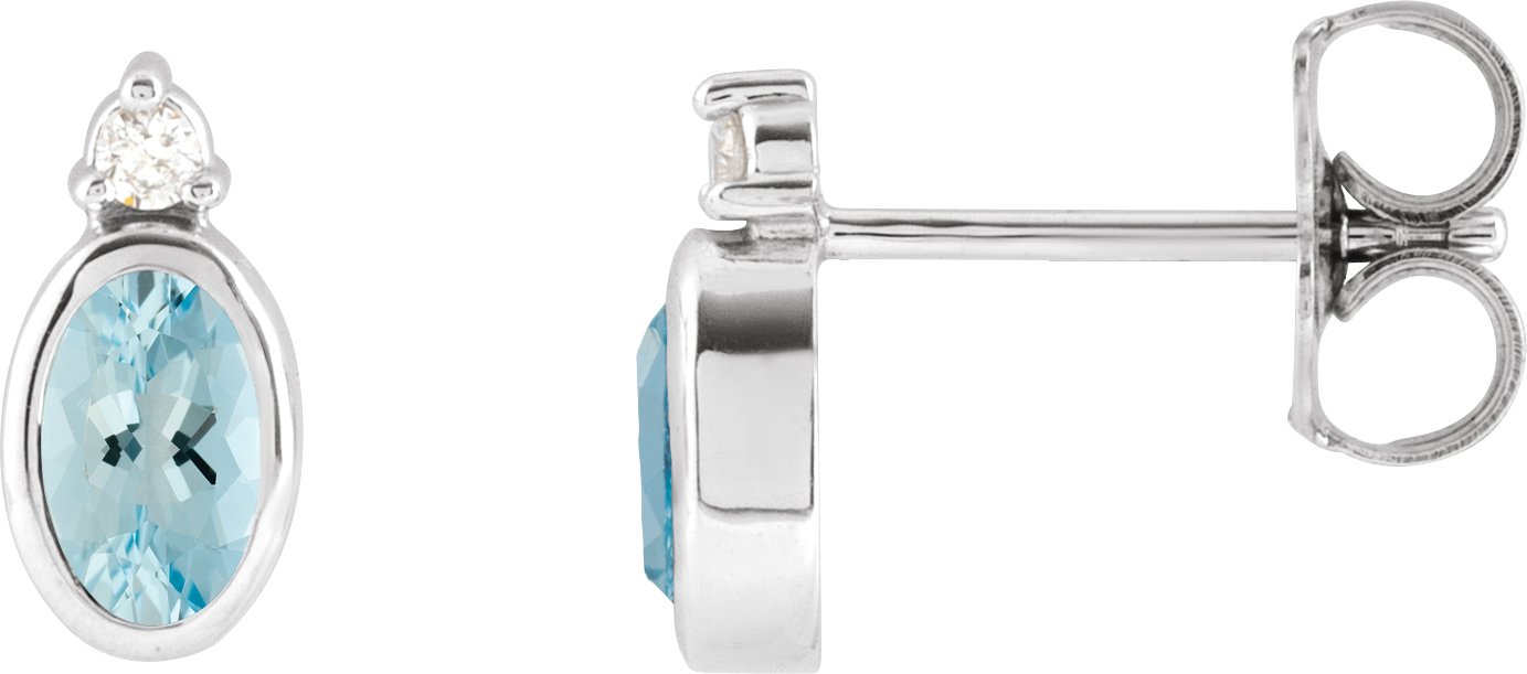 Sterling Silver 5x3 mm Natural Aquamarine & .03 CTW Natural Diamond Earrings