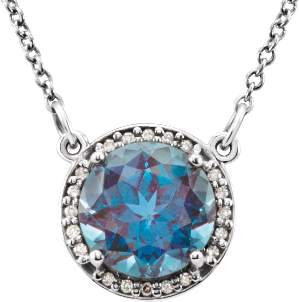 Sterling Silver 6 mm Round Chatham Created Alexandrite and .04 CTW Diamond 16 inch Necklace