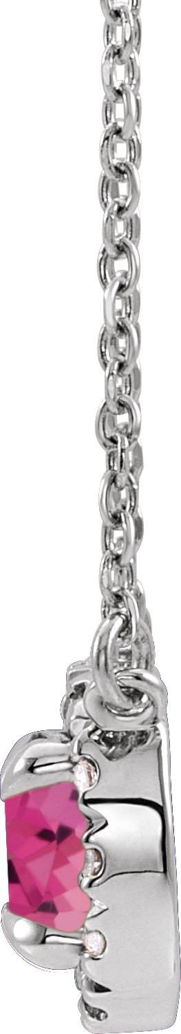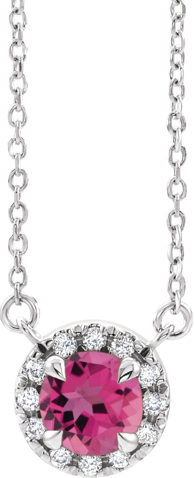 Sterling Silver 6 mm Round Pink Tourmaline & 1/5 CTW Diamond 16 inch Necklace