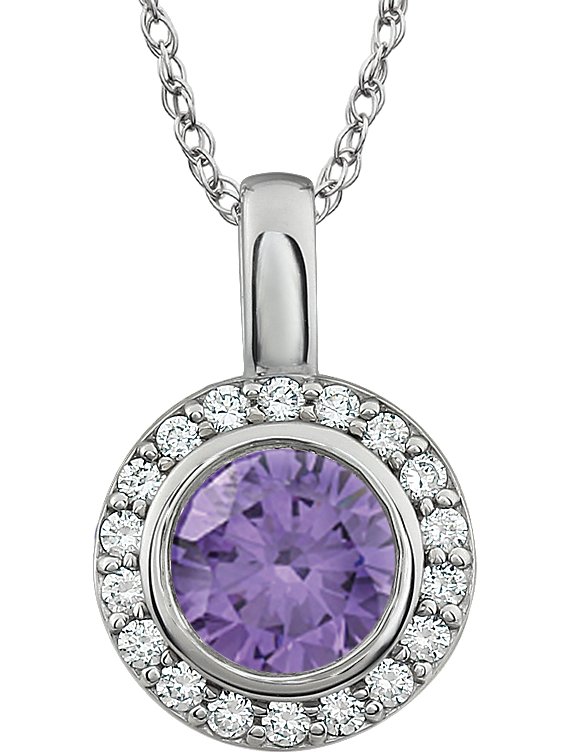 Sterling Silver 7 mm Round Purple Cubic Zirconia Halo Style 18 inch Necklace