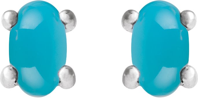Description: Natural Turquoise Cabochon 4-Prong Stud Earrings