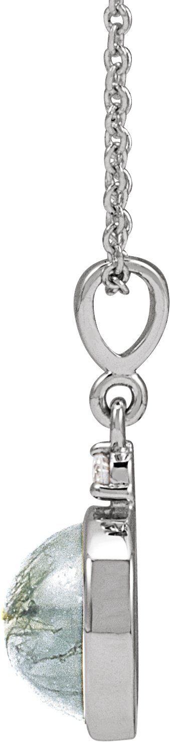 Sterling Silver 8 mm Natural Moss Agate & .03 CTW Natural Diamond 16-18" Necklace