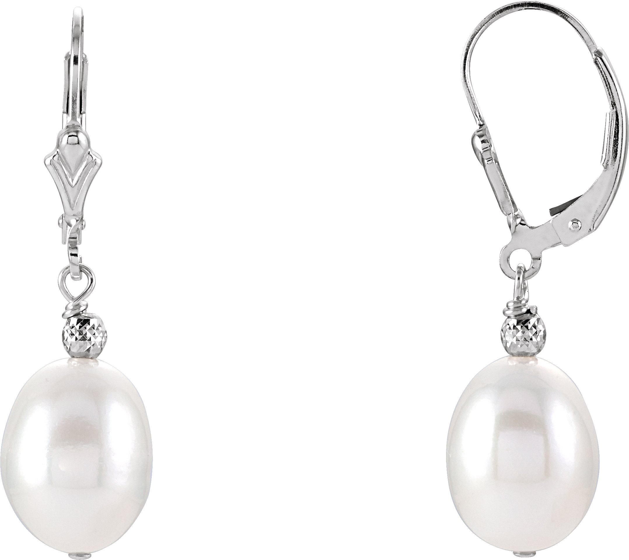 Sterling Silver 9 9.5 mm Freshwater Cultured Pearl Earrings