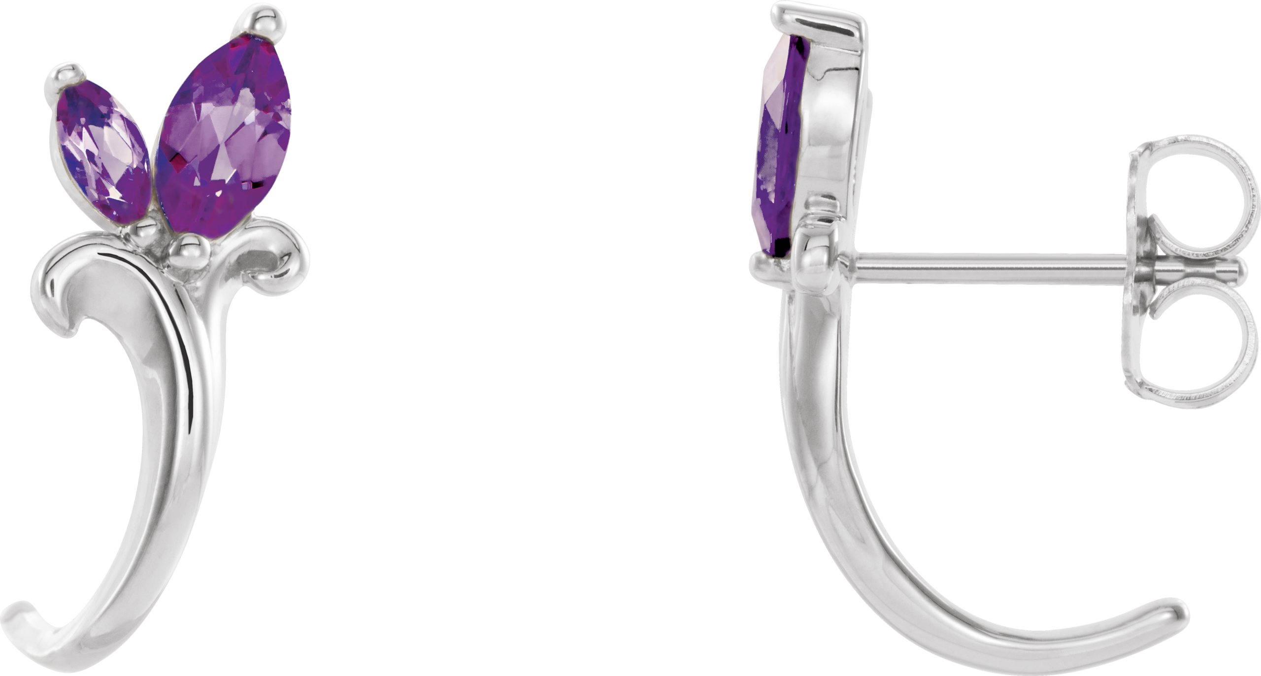 Sterling Silver Amethyst Floral Inspired J Hoop Earrings