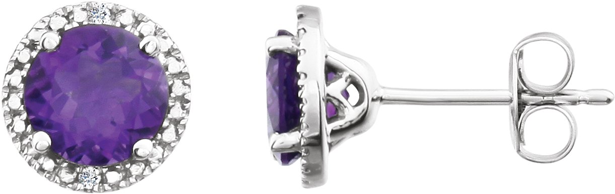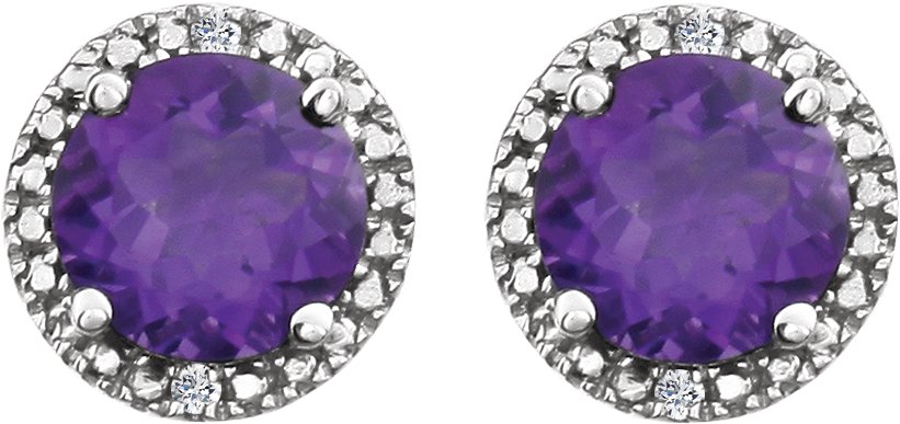 Description: Genuine Amethyst And .01 Ctw Diamond Earrings