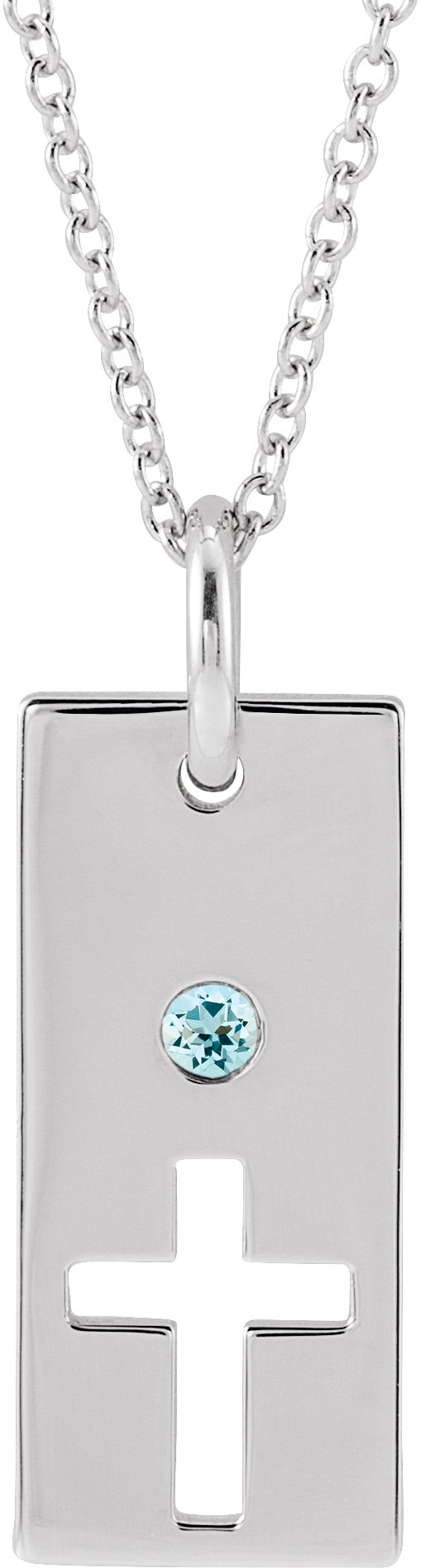 Description: Aquamarine Vertical Bar Cross Necklace