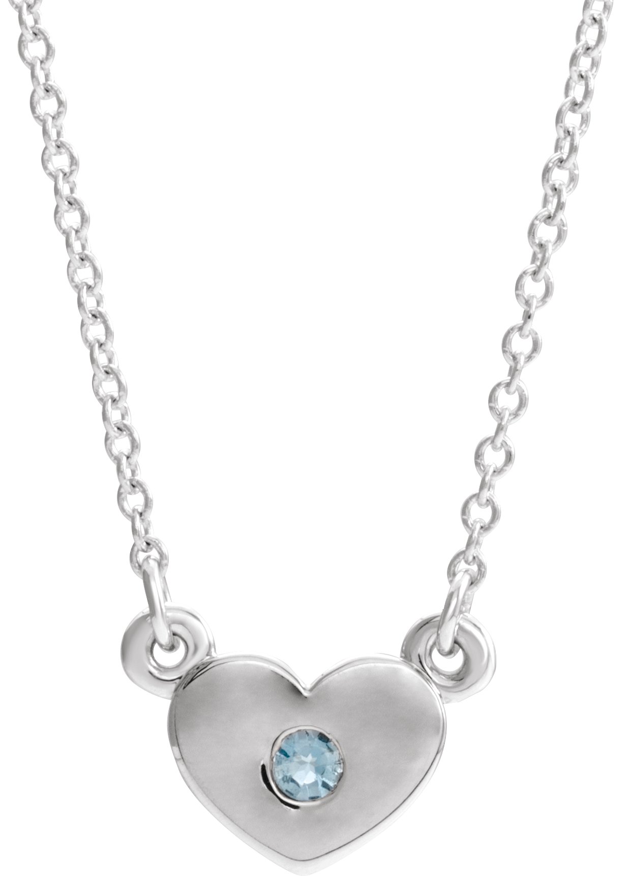 Sterling Silver Aquamarine Heart 16 inch Necklace