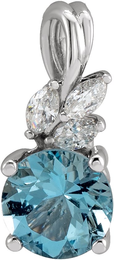 Description: Genuine Aquamarine And 1/10 Ctw Diamond Pendant