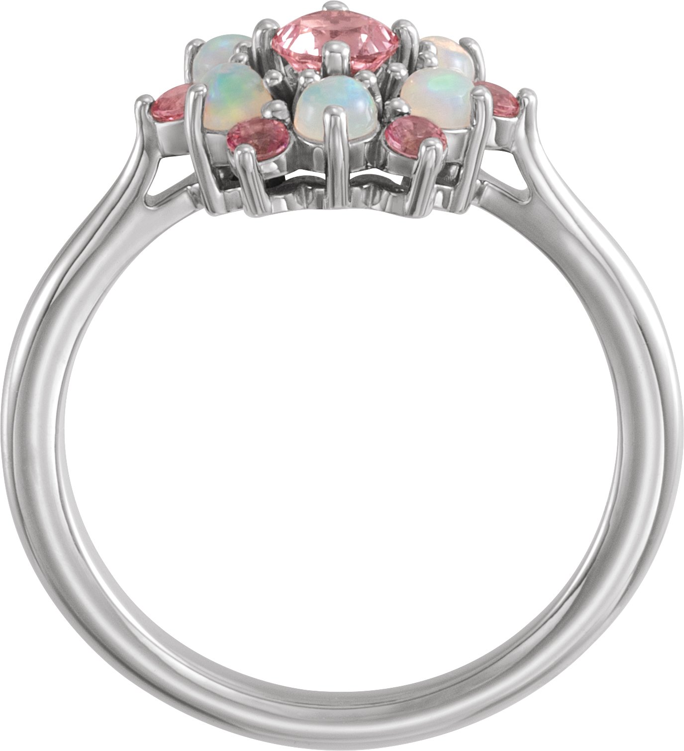 Sterling Silver Baby Pink Topaz & Ethiopian Opal Floral Inspired Ring