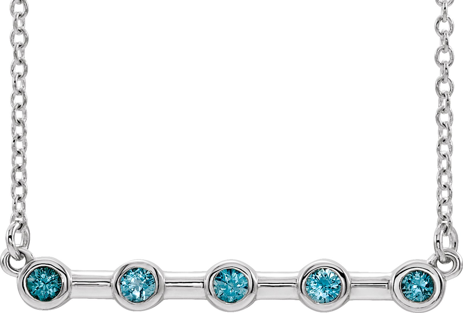 Sterling Silver Blue Zircon Bezel Set Bar 16 inch Necklace