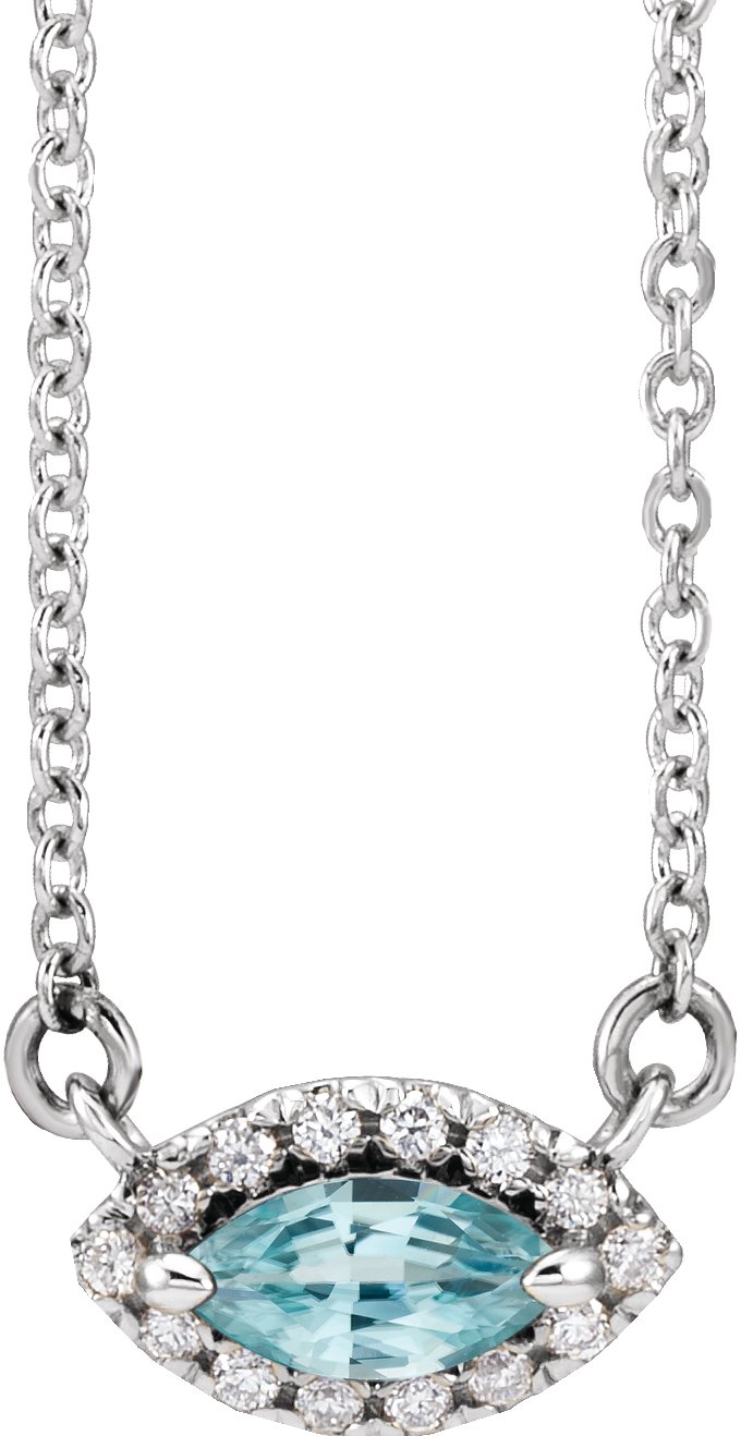 Sterling Silver Blue Zircon & .06 CTW Diamond 16 inch Necklace