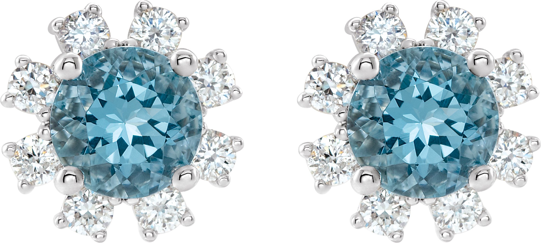 Description: Genuine Blue Zircon And .07 CTW Diamond Earrings