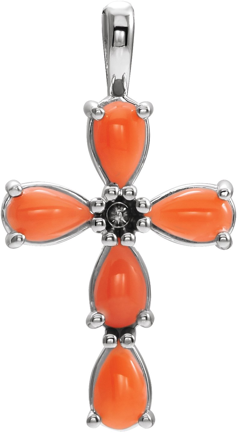 Sterling Silver Cabochon Pink Coral Cross Pendant Ref. 15303506