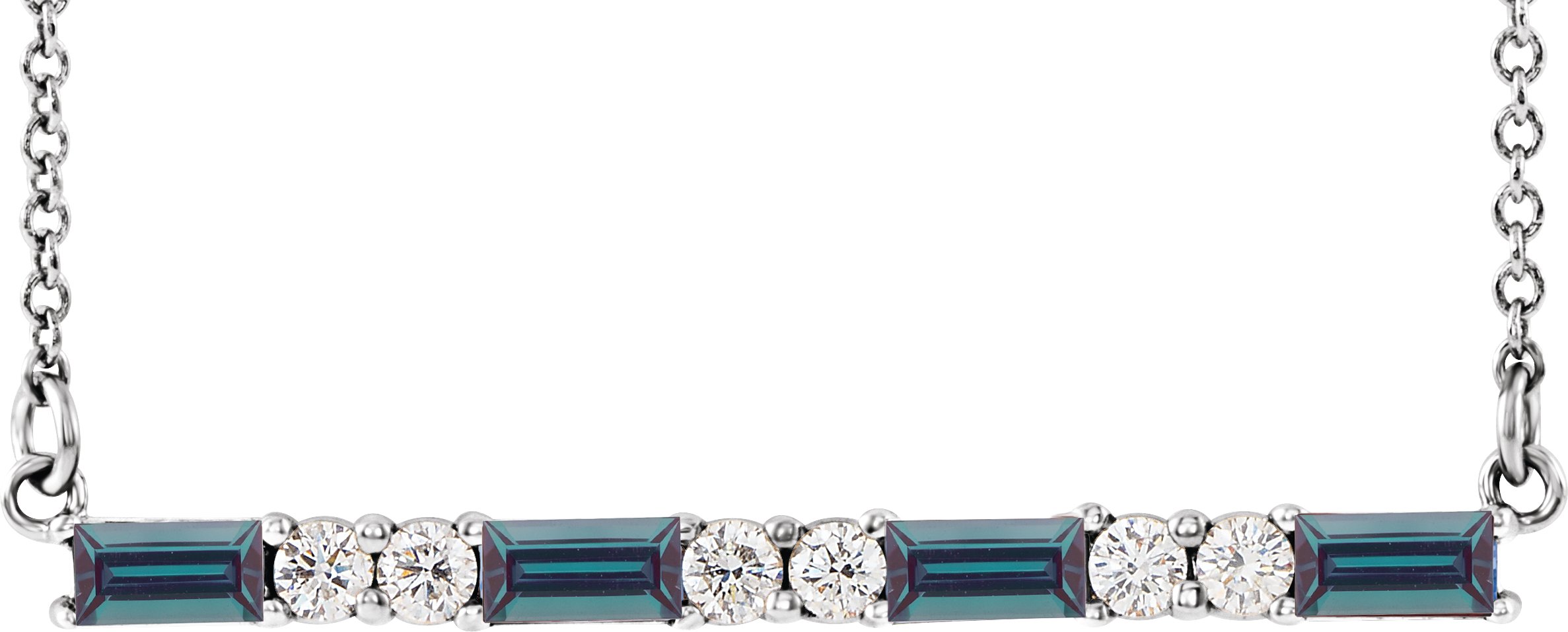Description: Chatham Alexandrite And 1/5 Ctw Diamond Bar Necklace