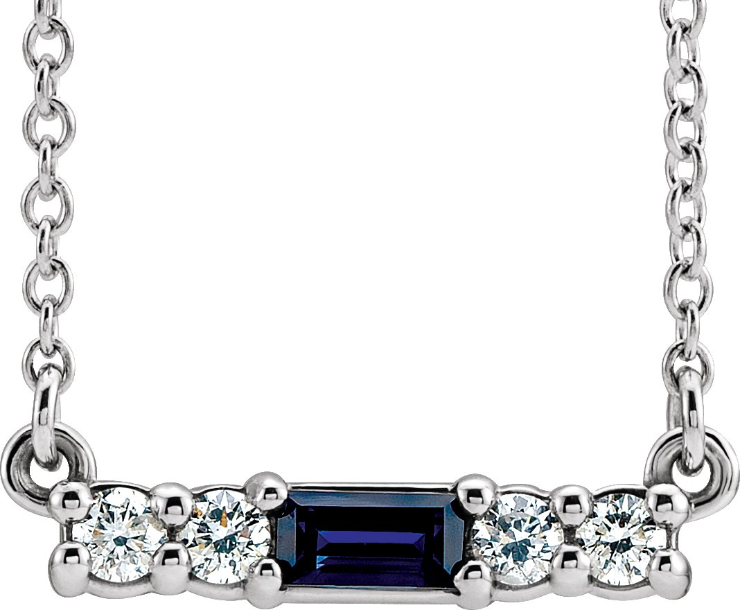 Sterling Silver Chatham Created Blue Sapphire & 1/5 CTW Diamond 16 inch Necklace