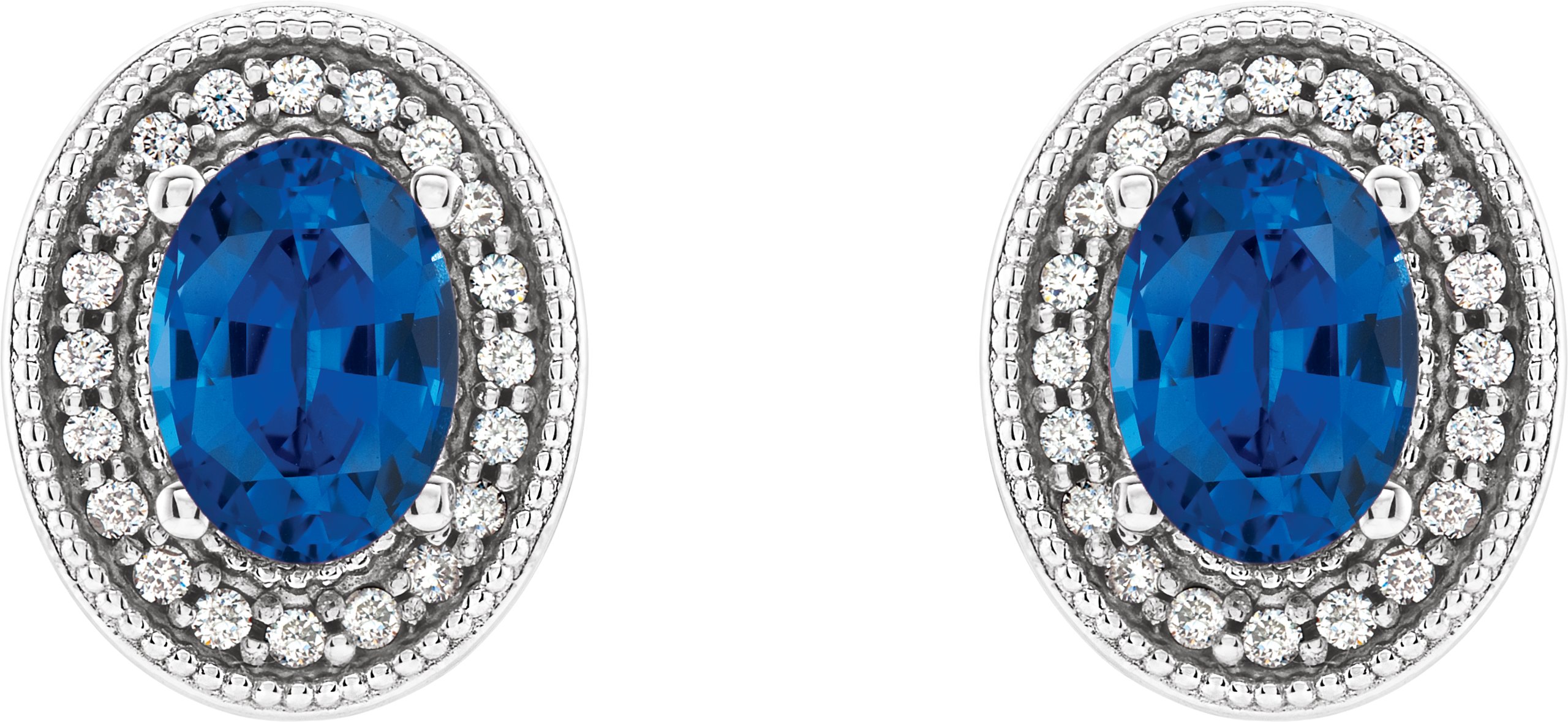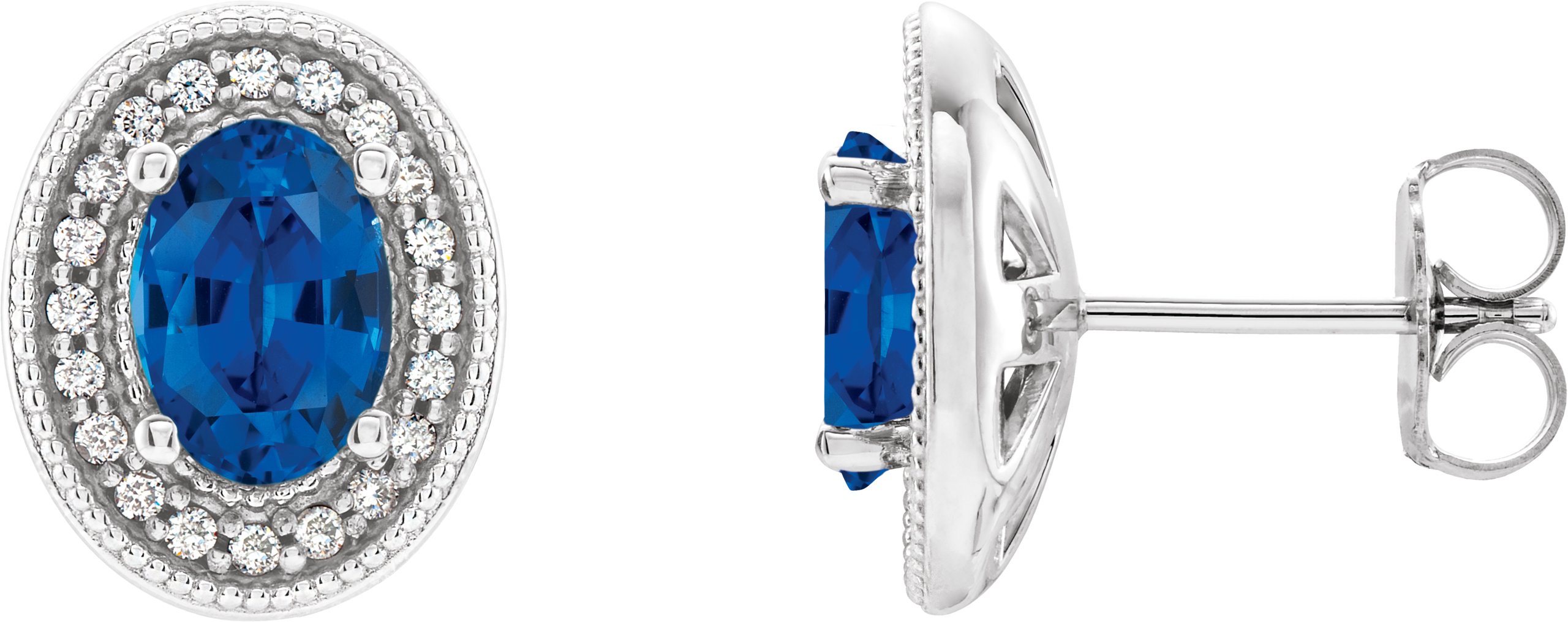 Description: Chatham Created Sapphire And 1/5 Ctw Diamond Earrings With Backs