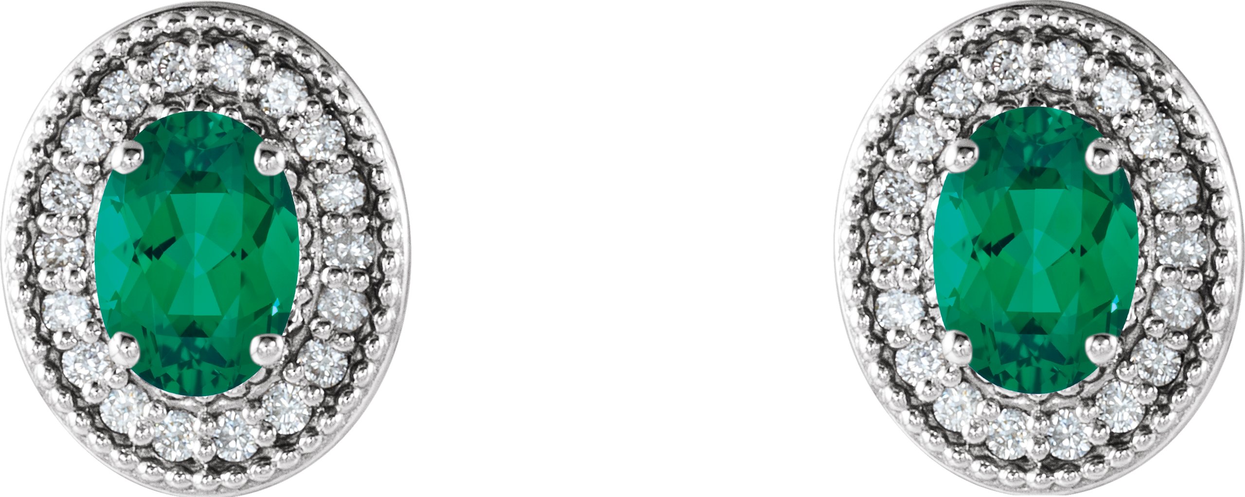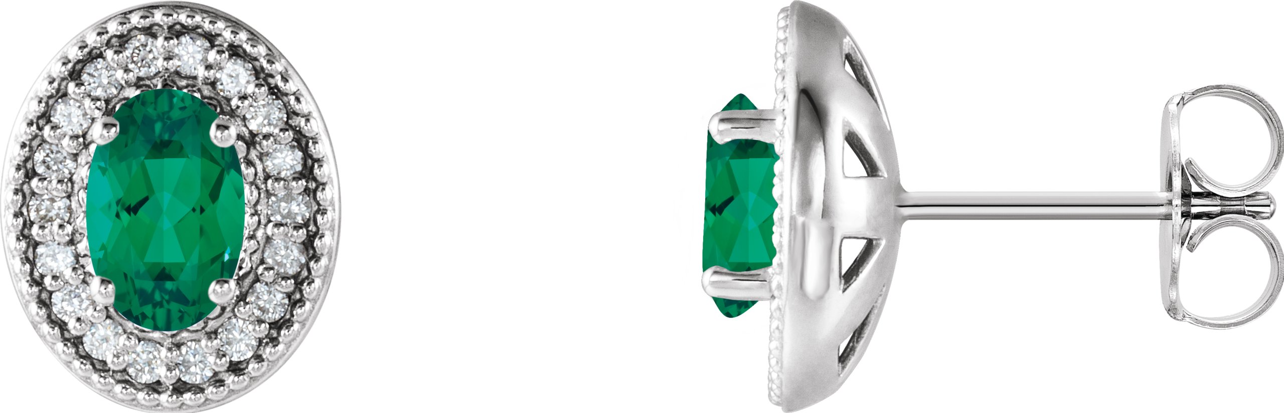 Description: Chatham Created Emerald And 1/5 Ctw Diamond Earrings