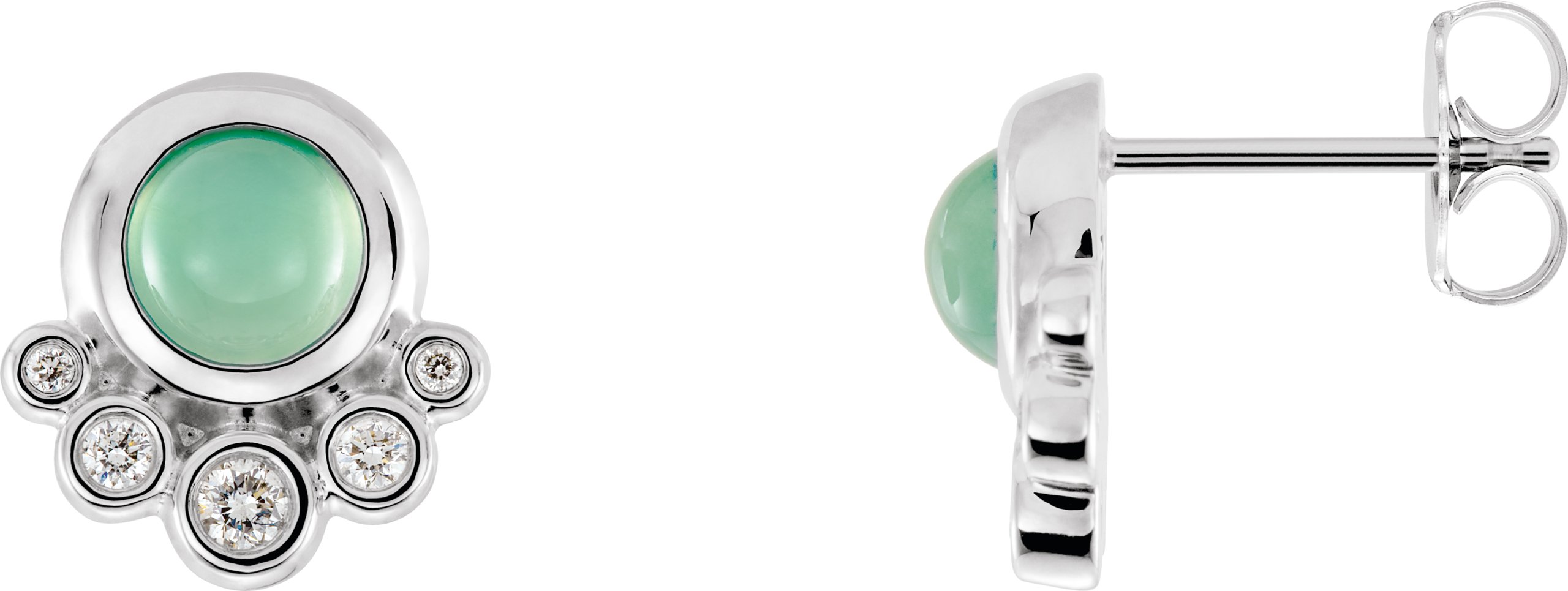 Description: Chrysoprase Cabochon And 1/8 Ctw Diamond Earrings W/Backs
