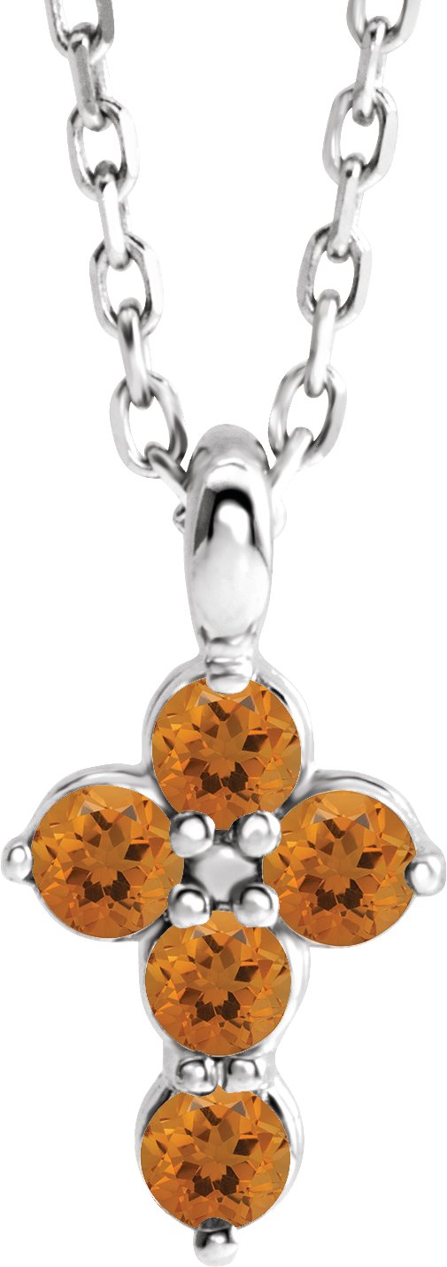 Sterling Silver Citrine Cross 16 18" Necklace Ref. 16238401