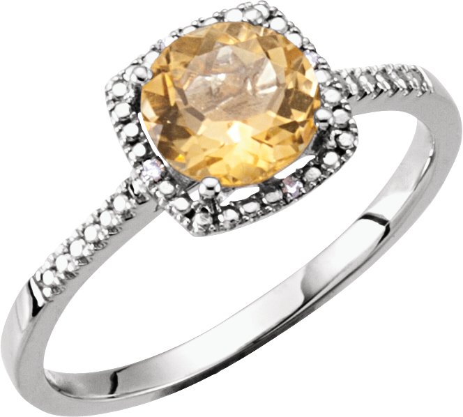 Description: Citrine And .01 Ctw Diamond Birthstone Ring