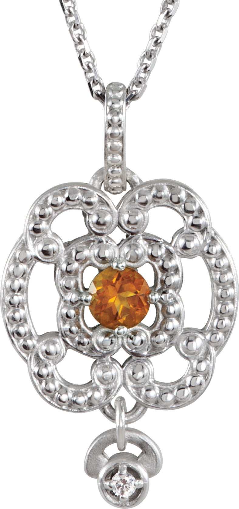 Sterling Silver Citrine & .015 CTW Diamond Granulated 18" Necklace Ref. 3635578
