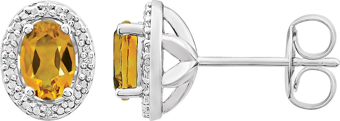 Description: Genuine Citrine And .025 Ctw Diamond Earrings With Backs