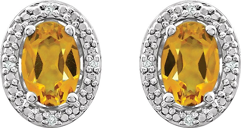 Sterling Silver Citrine & .025 CTW Diamond Earrings