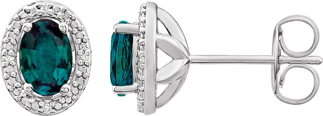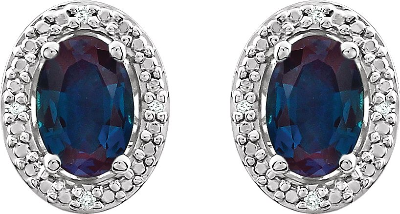 Sterling Silver Created Alexandrite & .025 CTW Diamond Earrings